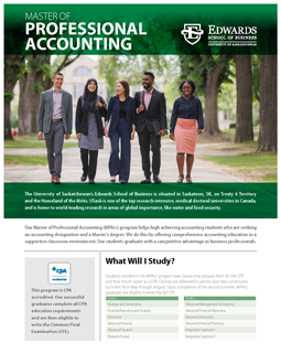 The Master of Professional Accounting Program (MPAcc) is an innovative graduate degree program that attracts top-notch accounting students from across Canada. Created by visionary academics in response to the demand for applied, competency-based training, the program actively involves students through the use of business cases, skills workshops, and other contemporary educational techniques.